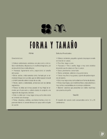> Tronco: no debe ser ni muy pesado ni muy frágil en ar- > General: canarios que presentan un visible mestizaje