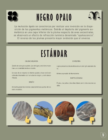 En caso de no respetar el efecto azulado, el ave será con- Mínima expresión de feomelanina.